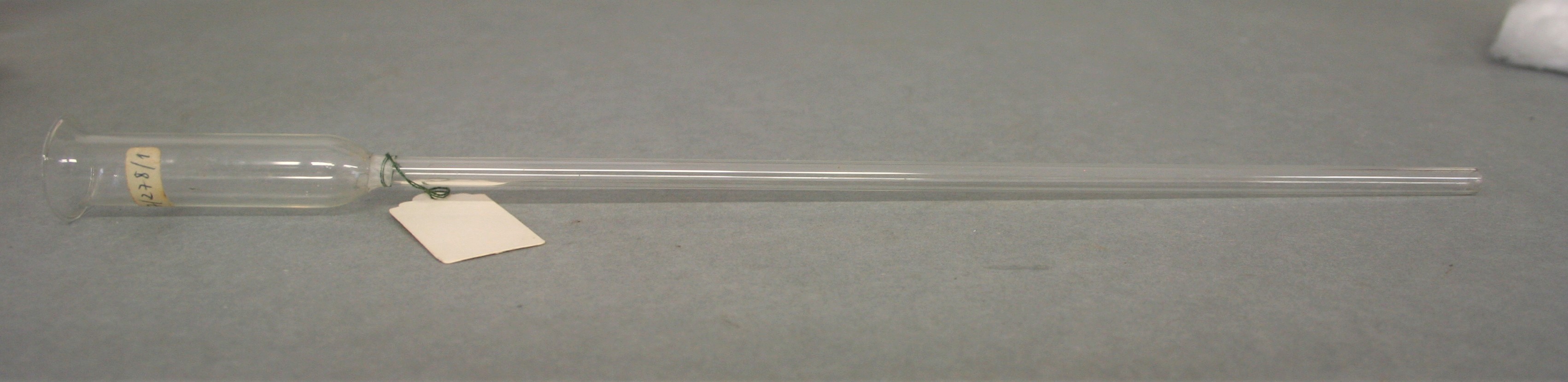 | Descrição: | Composto por um tudo de vidro mais largo numa das extremidades que contem uma abertura. |