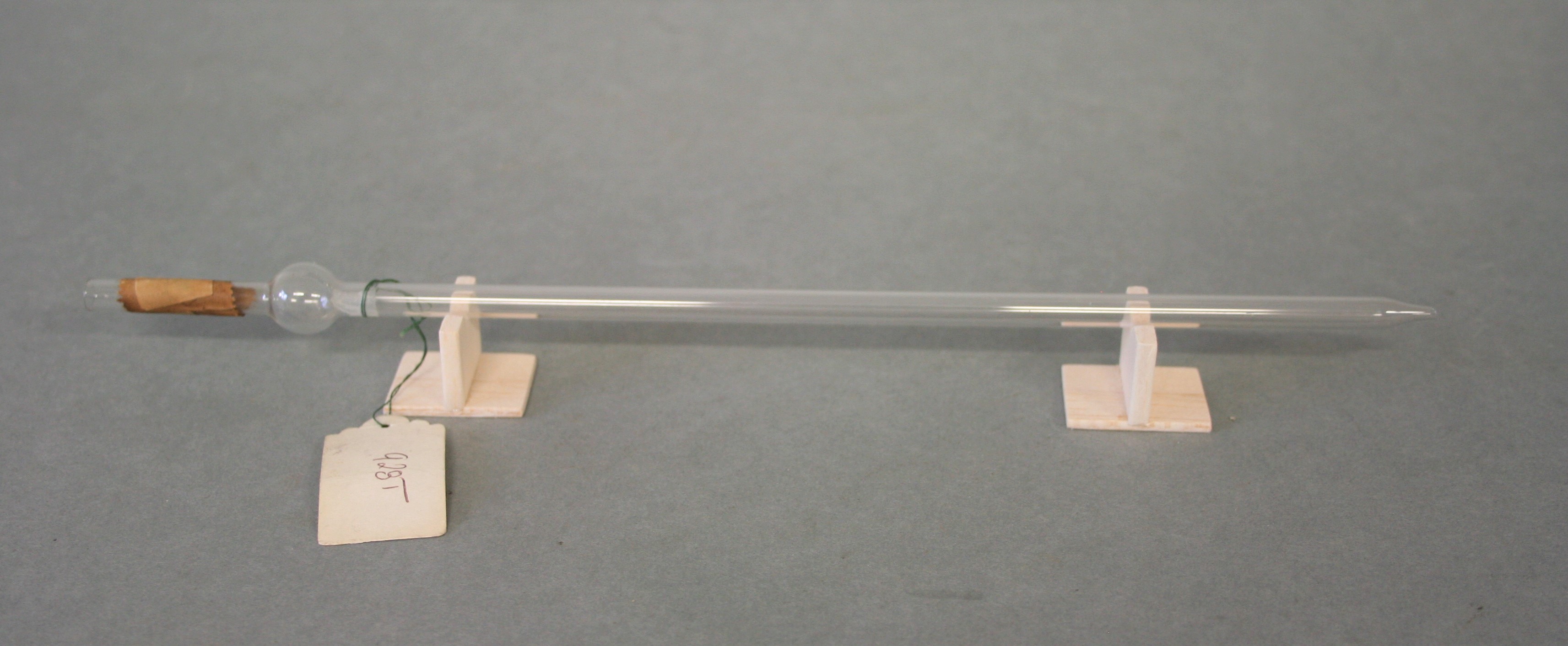 | Descrição: | Composta por um tudo de vidro estreito, com uma pequena esfera na parte superior. |