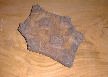 | Descrição: | Composto por um bloco de madeira com forma irregular, com entalhes feitos na madeira produzindo uma estampa simples de temática floral. |