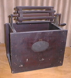 | Descrição: | Composto por uma tina retangular em madeira com um sarilho na parte superior, onde eram enroladas as meadas de lá ou algodão. |