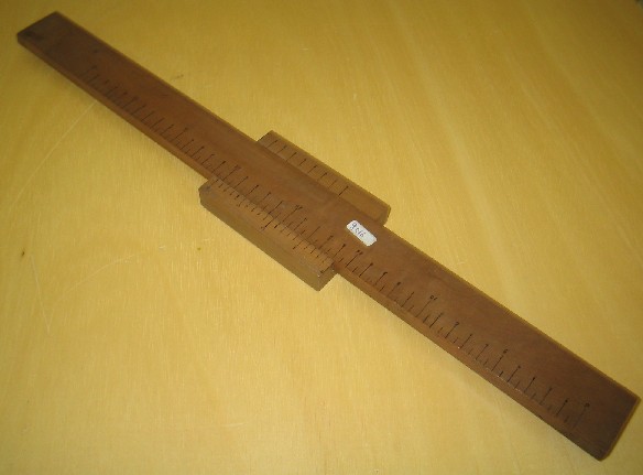 | Descrição: | Composta por uma régua de madeira com a escala gravada e um cursos que deslisa ao longo da mesma. |