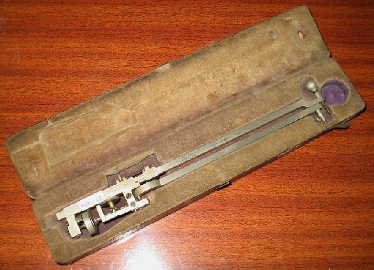 | Descrição: | Composto por duas hastes horizontais articuladas. A extremidade livre de uma das hastes é mantida fixa sobre a mesa, enquanto a extremidade livre da segunda haste é deslocada sobre o perímetro da área a ser medida. Na articulação entre as duas hastes existe uma pequena roda em contacto com a mesa que gira enquanto o perímetro da superfície vai sendo percorrido. Um contador marca o número de voltas da roda. A área da superfície é proporcional ao número de voltas registadas pelo contador. |