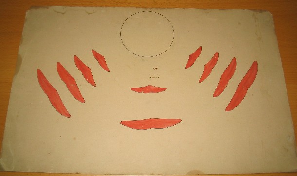 | Descrição: | Estampa de cartão com imagem colorida destorcida para ser produzida nos espelhos cilíndricos. |