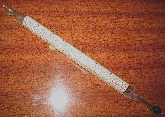 | Finalidade: | Utilizado para medir a temperatura durante o aquecimento em operações como: destilação simples, fracionada, etc. Destinava-se a fazer medições de temperaturas inferiores a 55º. Tinha pouca precisão. |