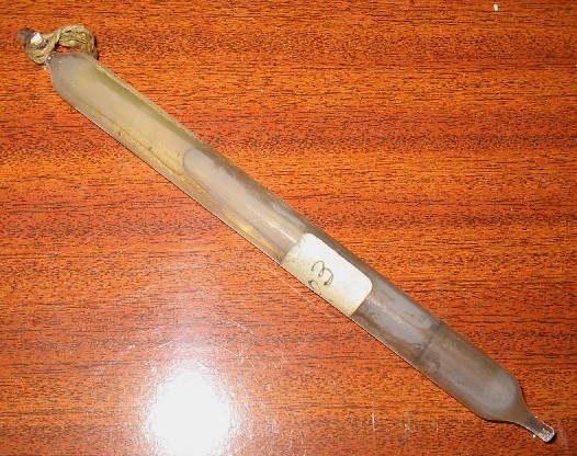 | Descrição: | Composto por um tubo de vidro com quatro líquidos diferentes no seu interior - Mercúrio, potassa caustica, álcool e petróleo. Quando se agita o frasco, parece que os líquidos se misturam, mas logo que se coloca em repouso, sobrepõem-se pela ordem decrescente das suas densidades. |