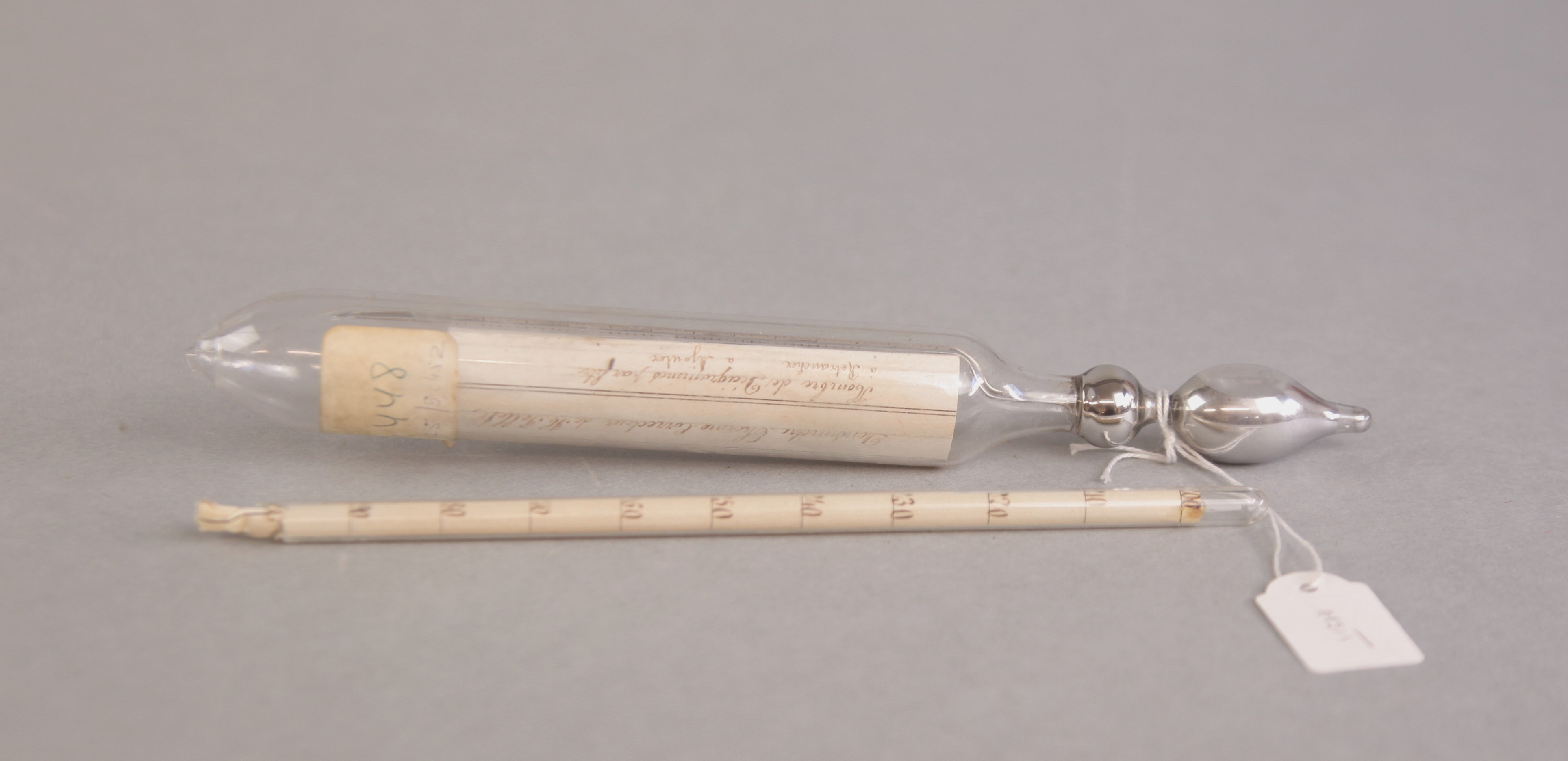 | História do Objecto: | Os densímetros são areómetros de peso constante que permitem determinar densidades de sólidos ou líquidos por considerações baseadas no principio de equilíbrio dos corpos flutuantes (princípio de Arquimedes). O seu princípio de funcionamento deve-se a Joseph Gay-Lussac (17778-1850). |