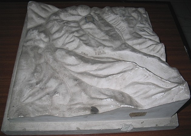 | Descrição: | Modelo em gesso de um terreno bastante acidentado. |