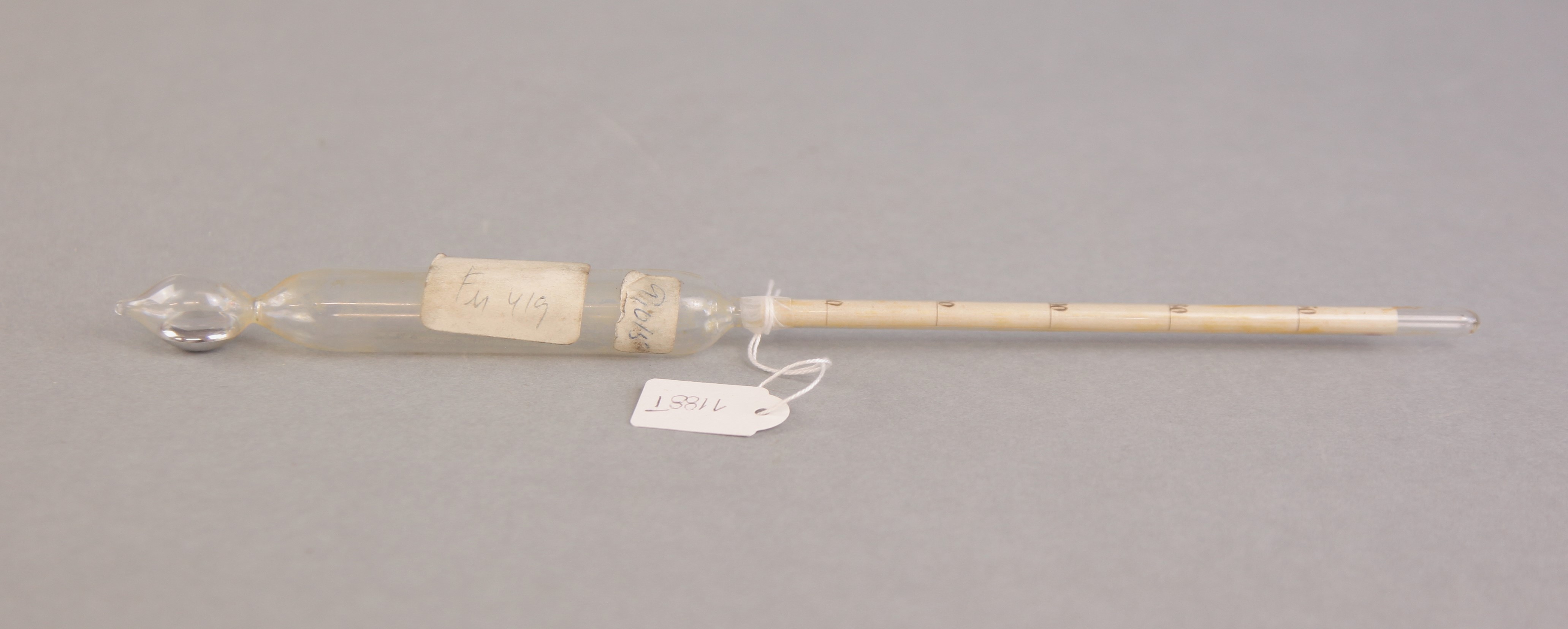 | História do Objecto: | Os densímetros são areómetros de peso constante que permitem determinar densidades de sólidos ou líquidos por considerações baseadas no principio de equilíbrio dos corpos flutuantes (princípio de Arquimedes). O seu princípio de funcionamento deve-se a Joseph Gay-Lussac (17778-1850). |