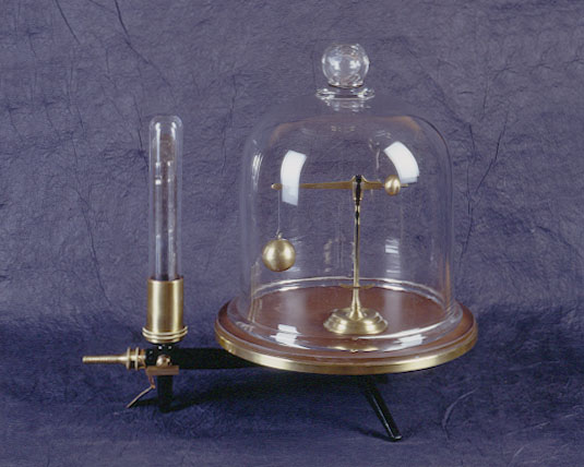 | Finalidade: | Utilizado para demonstrar o princípio de Arquimedes para os gases -"num gás um corpo pode descer ou subir, ficando em equilíbrio como se a gravidade não atuasse sobre ele - aerostação". Quando colocamos o baroscópio em vácuo, observamos que a esfera grande e oca inclina-se para o lado, o que prova que a maior é mais pesada que a outra e que é a influência do ar torna-as aparentemente de peso igual. Ou seja, a esfera grande sofre da parte do ar uma impulsão maior que a outra e que essa impulsão é igual ao volume de ar que esta desloca. |