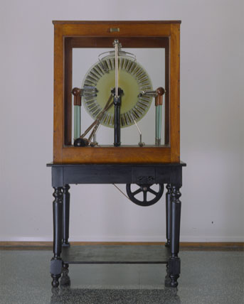 | Finalidade: | Utilizada para criar carga elétrica por fricção, por contacto e/ou por indução ou influência, sendo essa carga coletada ou armazenada em corpos adequados, para posterior uso. Em geral essa carga é usada para carregar garrafas de Leyden ou condensadores. |